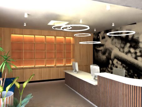 Aménagement de l'accueil du siège de l'usine Les Cafés Henri à Hoerdt.