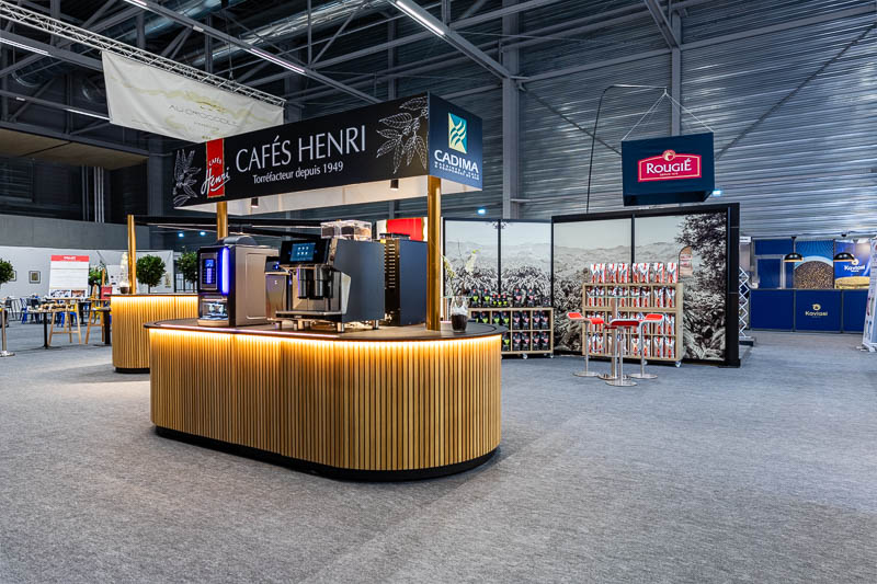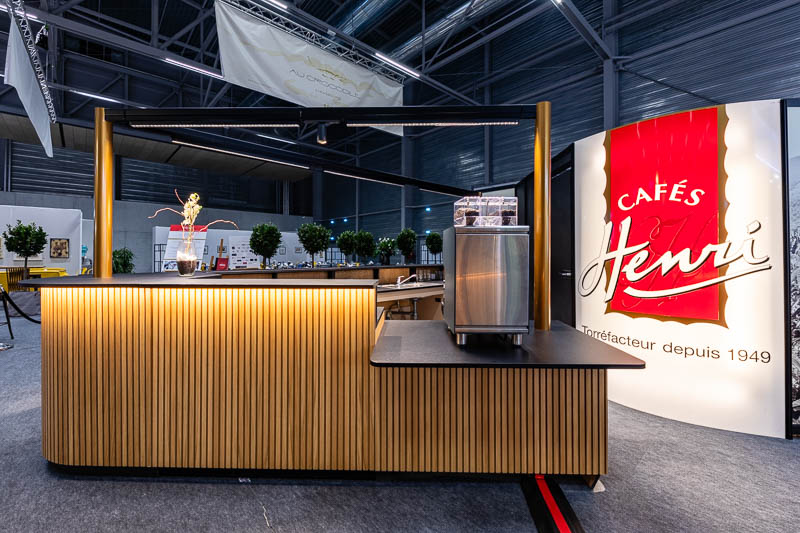 Création d'un stand modulable pour représenter la marque Les Cafés Henri dans les salons éphémères.